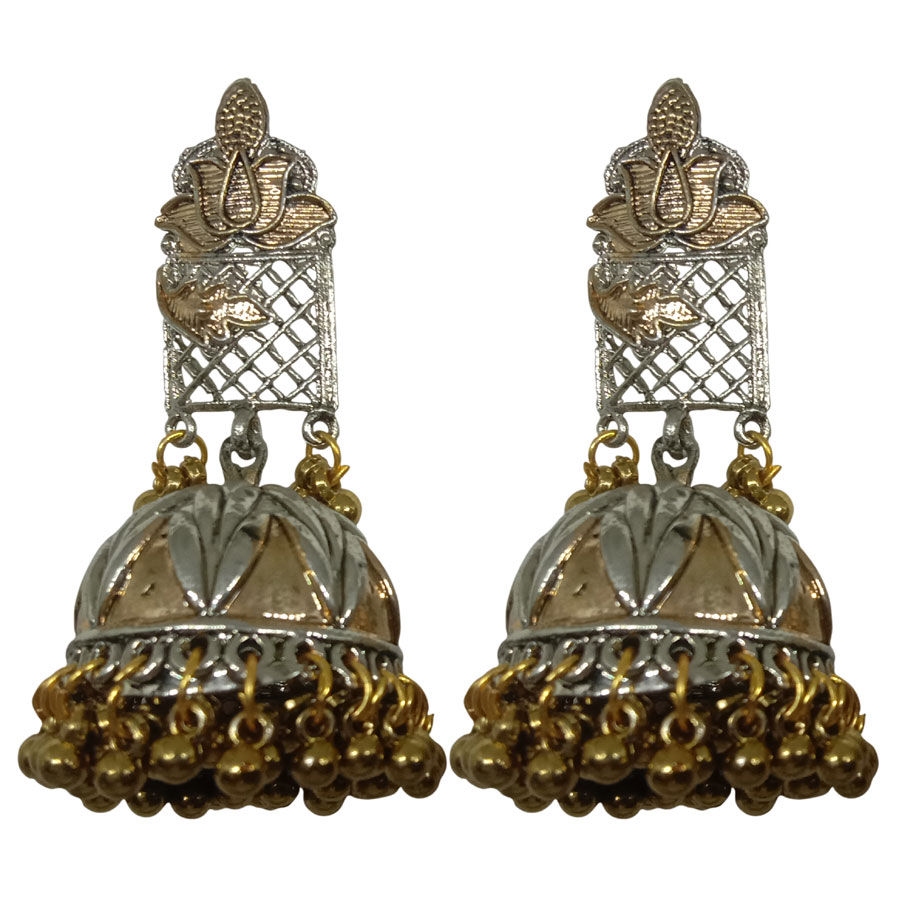Gold and Silver Rodium Polish Silver color Earrings in Brass studded with Austrian diamond