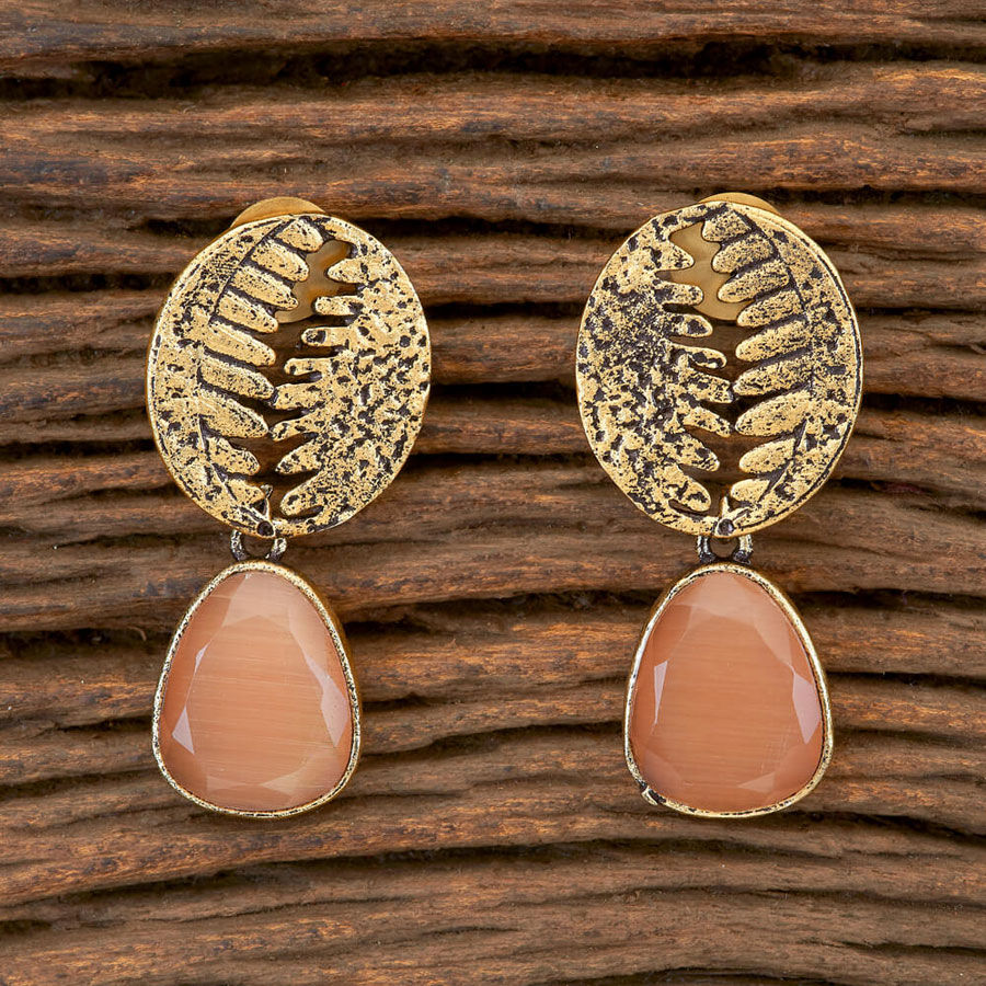 Gold Rodium Polish Beige and Brown color Earrings in Metal Alloy studded with CZ Diamond