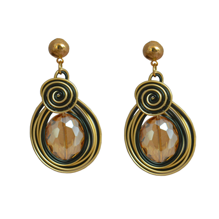 Gold Rodium Polish Beige and Brown color Earrings in Metal Alloy studded with Beads