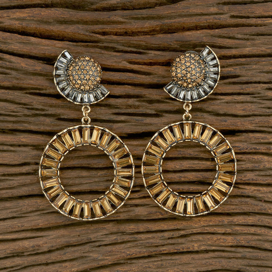 Gold Rodium Polish Black and Grey color Earrings in Brass studded with CZ Diamond