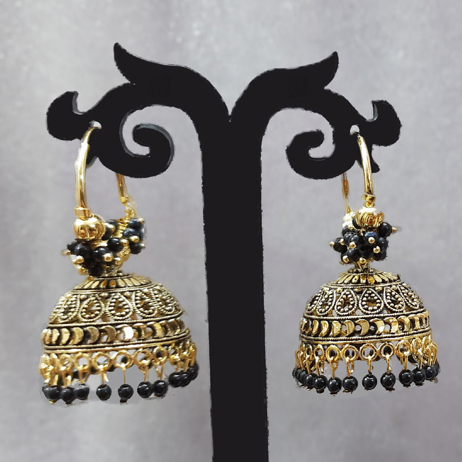Gold Rodium Polish Black and Grey color Earrings in Metal Alloy studded with Beads