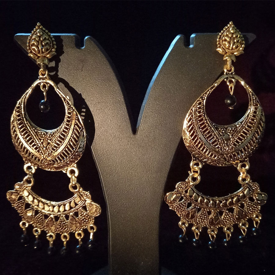 Gold Rodium Polish Black and Grey color Earrings in Metal Alloy studded with Beads