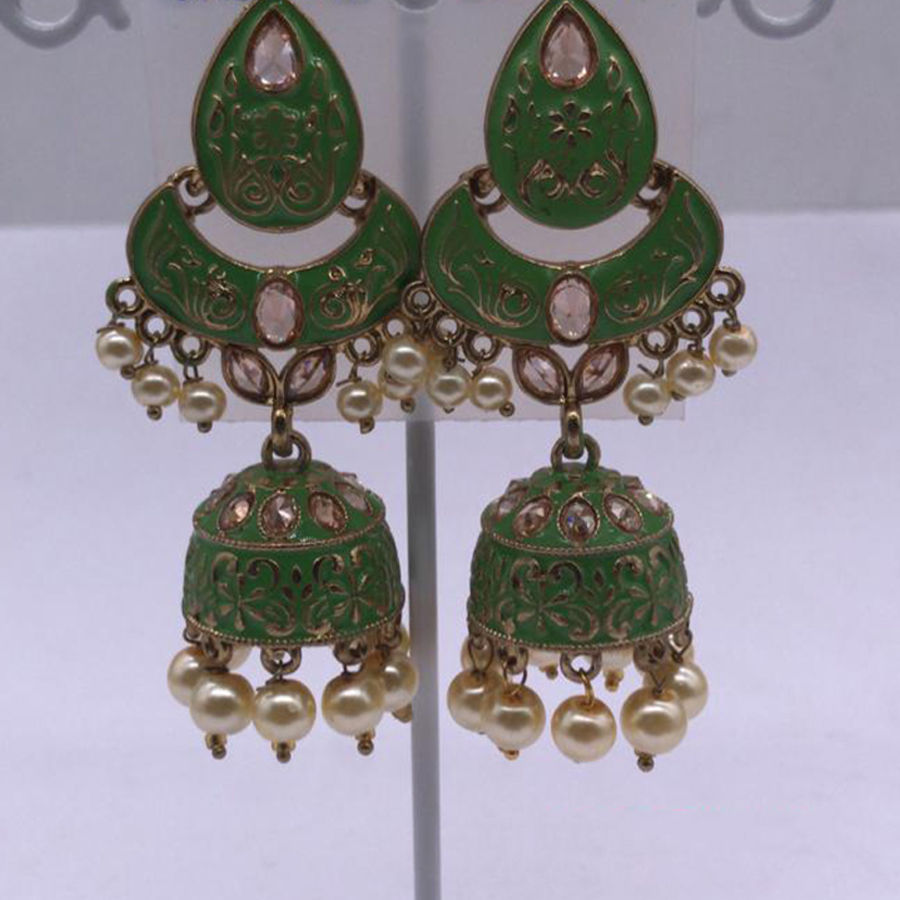 Gold Rodium Polish Black and Grey color Earrings in Metal Alloy studded with CZ Diamond, Pearl