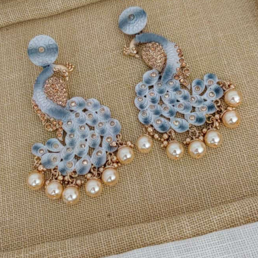 Gold Rodium Polish Black and Grey color Earrings in Brass, Metal Alloy studded with Beads, CZ Diamond, Pearl