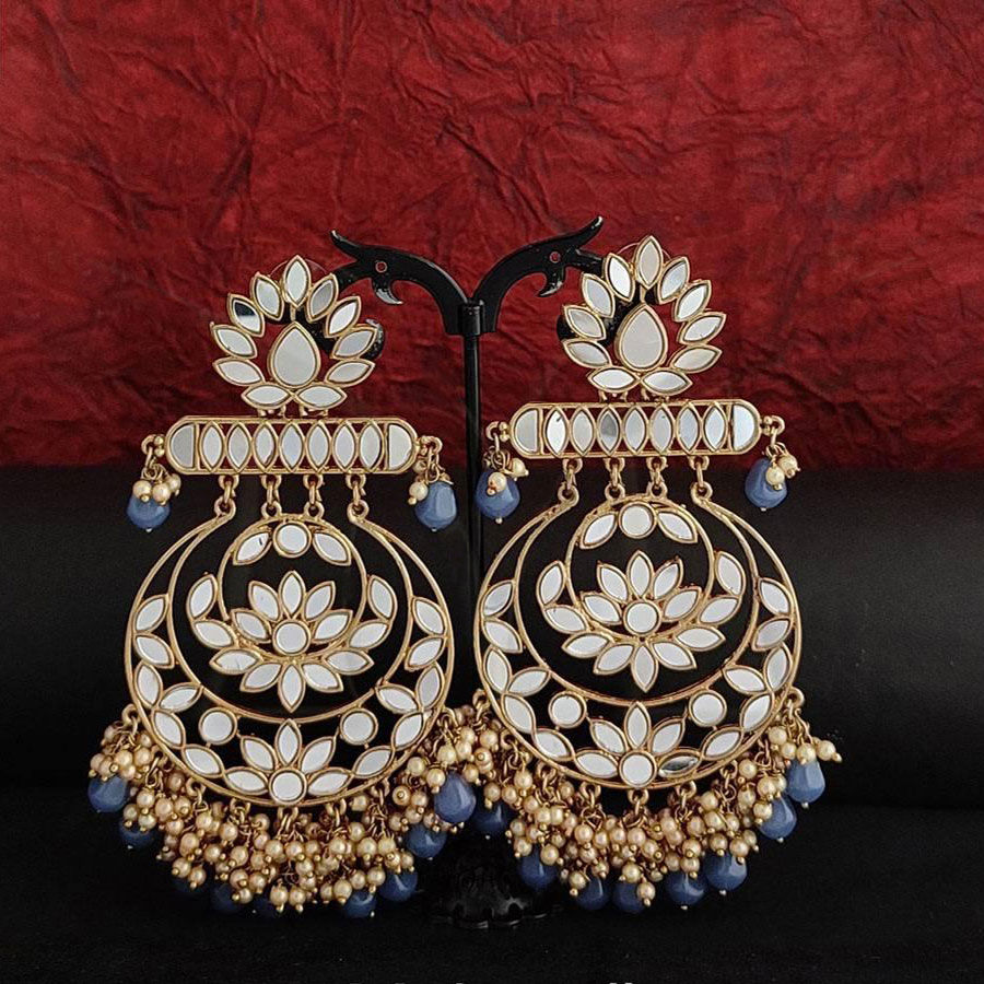 Gold Rodium Polish Blue color Earrings in Brass, Copper, Metal Alloy studded with Pearl