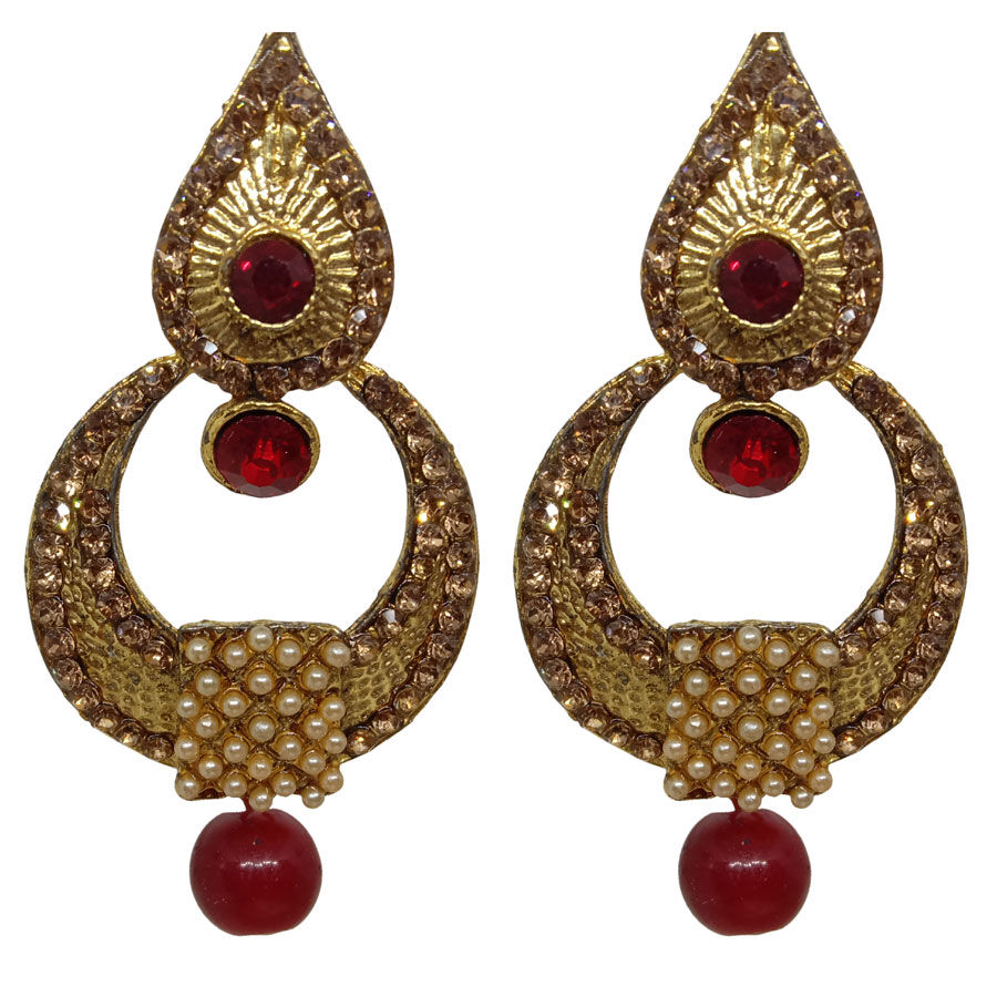 Gold Rodium Polish Gold, Red and Maroon color Earrings in Brass studded with Austrian diamond