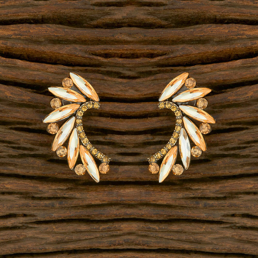 Gold Rodium Polish Gold color Earrings in Brass studded with CZ Diamond