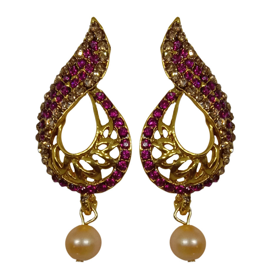 Gold Rodium Polish Gold color Earrings in Brass studded with Pearl