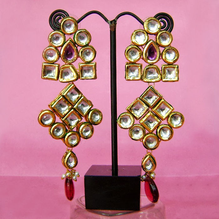 Gold Rodium Polish Gold Earrings in Metal Alloy with Kundan