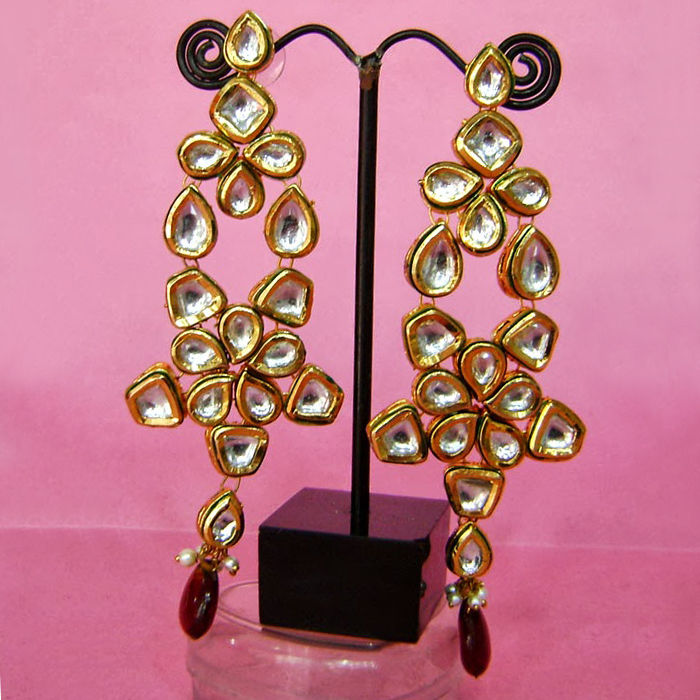 Gold Rodium Polish Gold Earrings in Metal Alloy with Kundan