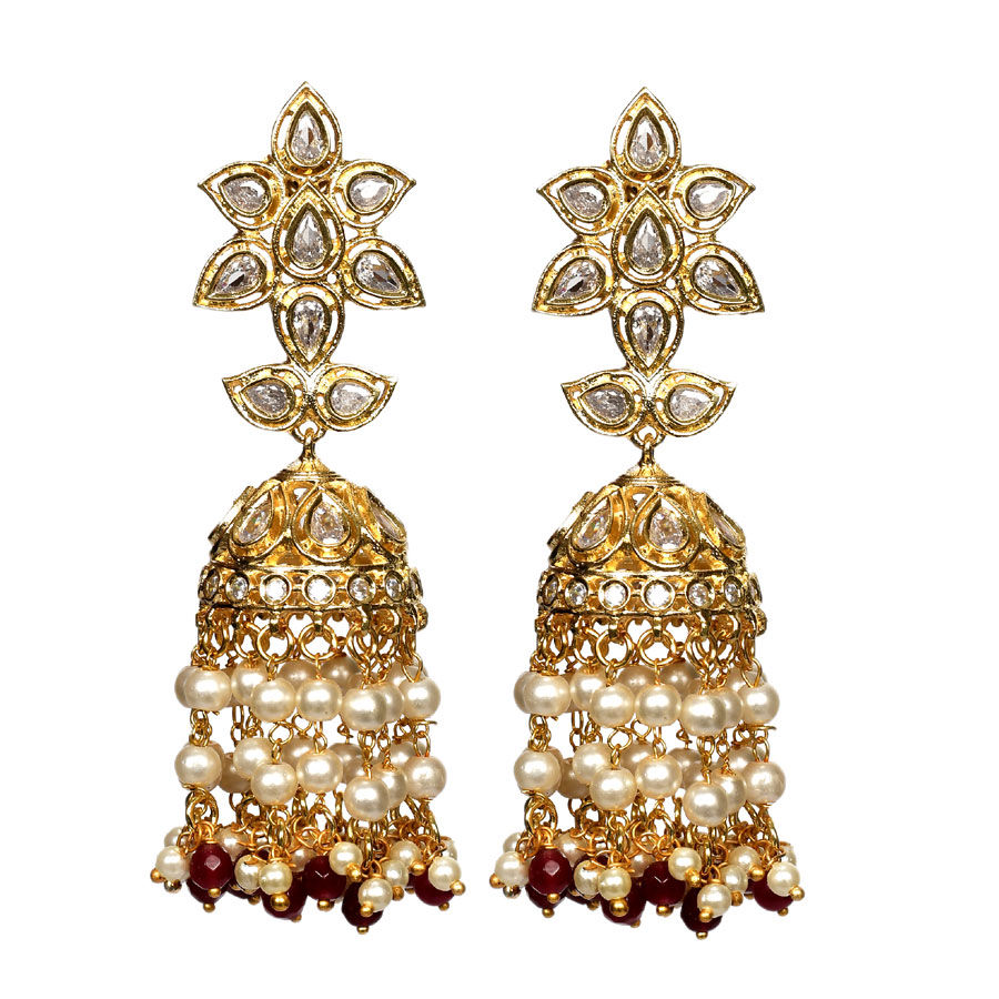 Gold Rodium Polish Gold color Earrings in Metal Alloy studded with Kundan, Pearl