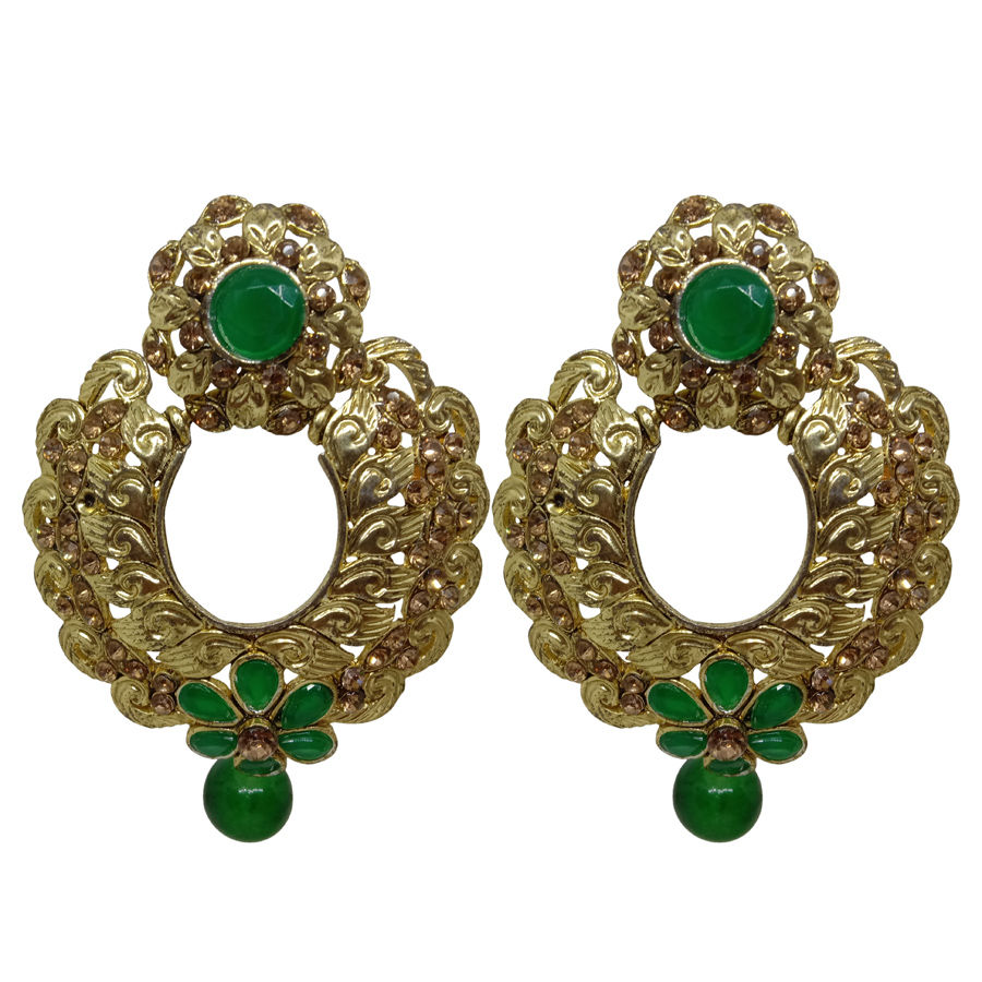 Gold Rodium Polish Gold, Green color Earrings in Brass studded with Austrian diamond