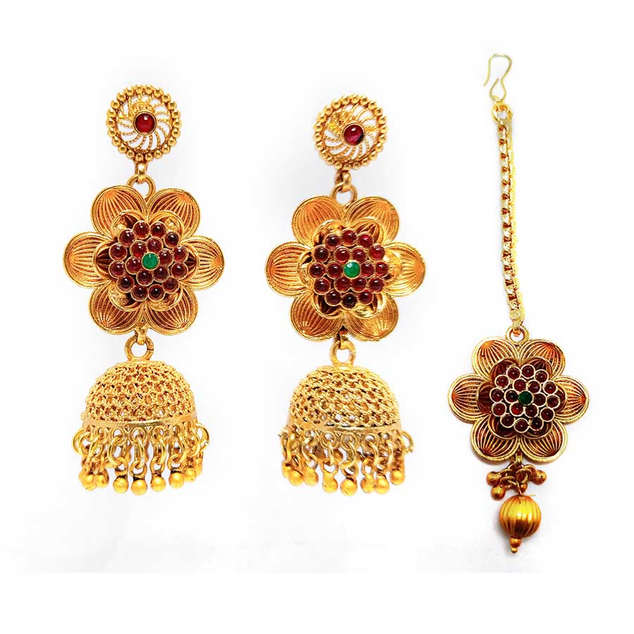 Gold Rodium Polish Green, Red and Maroon color Earrings in Brass, Copper, Metal Alloy studded with CZ Diamond