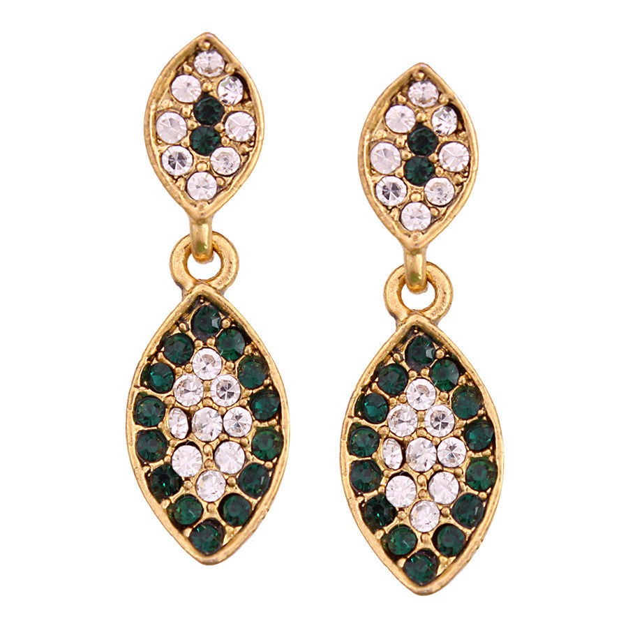 Gold Rodium Polish Green color Earrings in Metal Alloy studded with Austrian diamond