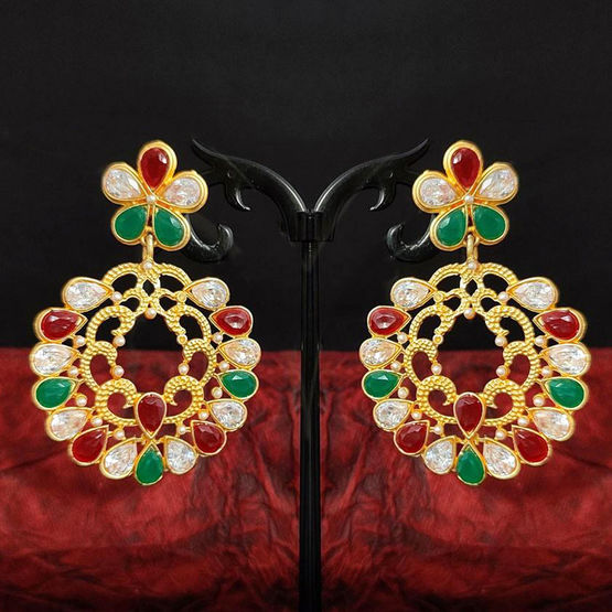 Gold Rodium Polish Green color Earrings in Brass, Copper, Metal Alloy studded with CZ Diamond, Pearl