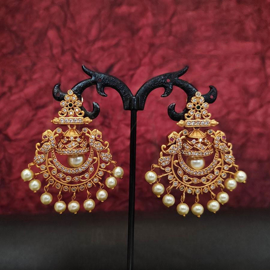 Gold Rodium Polish Multicolor color Earrings in Brass, Copper, Metal Alloy studded with CZ Diamond, Pearl
