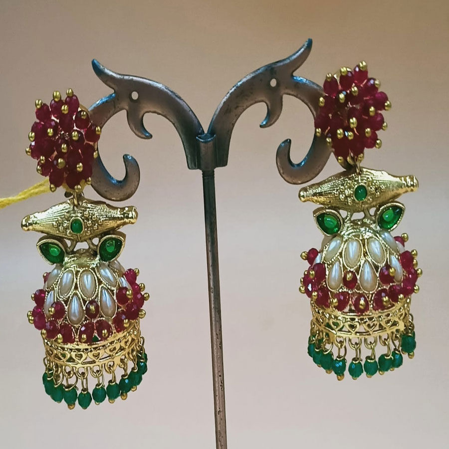 Gold Rodium Polish Multicolor color Earrings in Copper studded with CZ Diamond