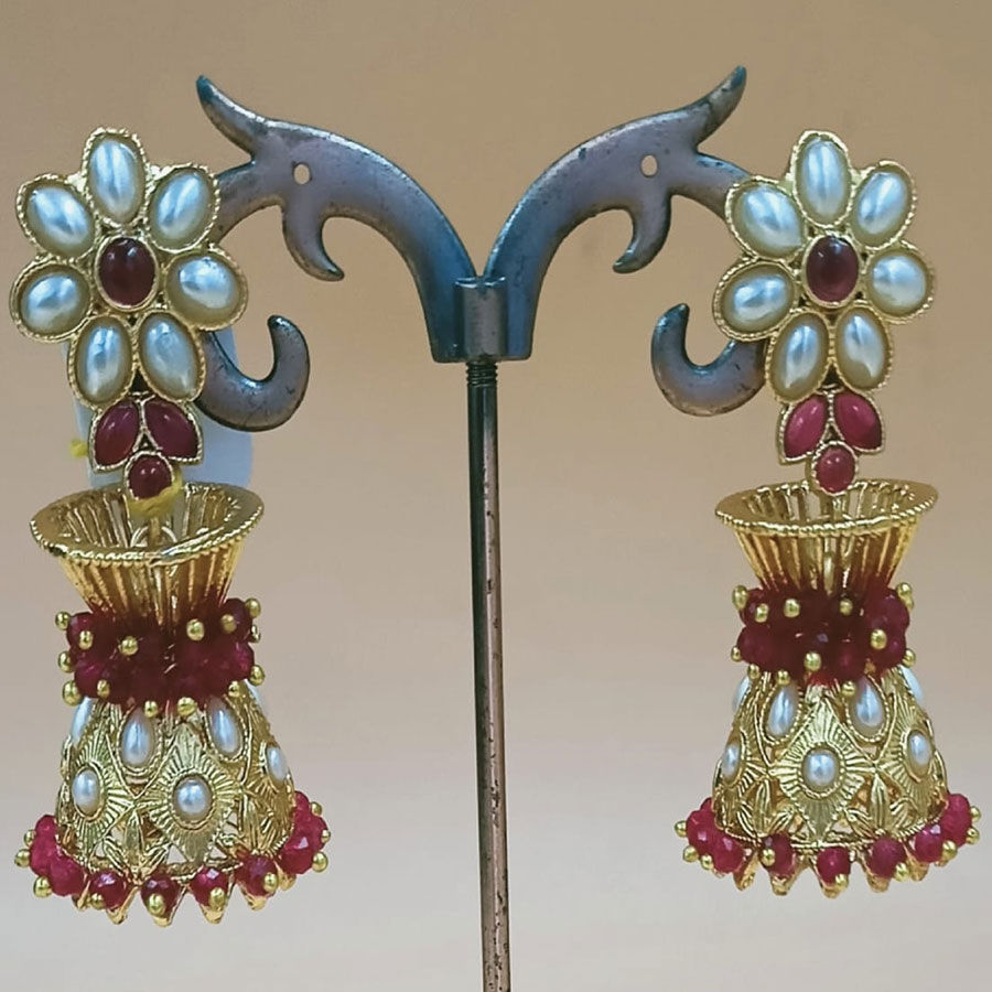 Gold Rodium Polish Multicolor color Earrings in Copper studded with Pearl