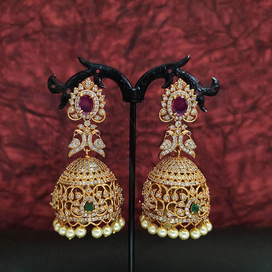 Gold Rodium Polish Multicolor color Earrings in Brass, Copper, Metal Alloy studded with CZ Diamond, Pearl