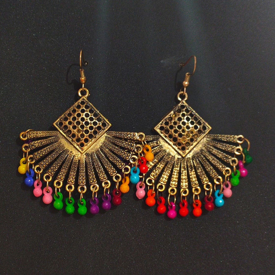 Gold Rodium Polish Multicolor color Earrings in Metal Alloy studded with Beads