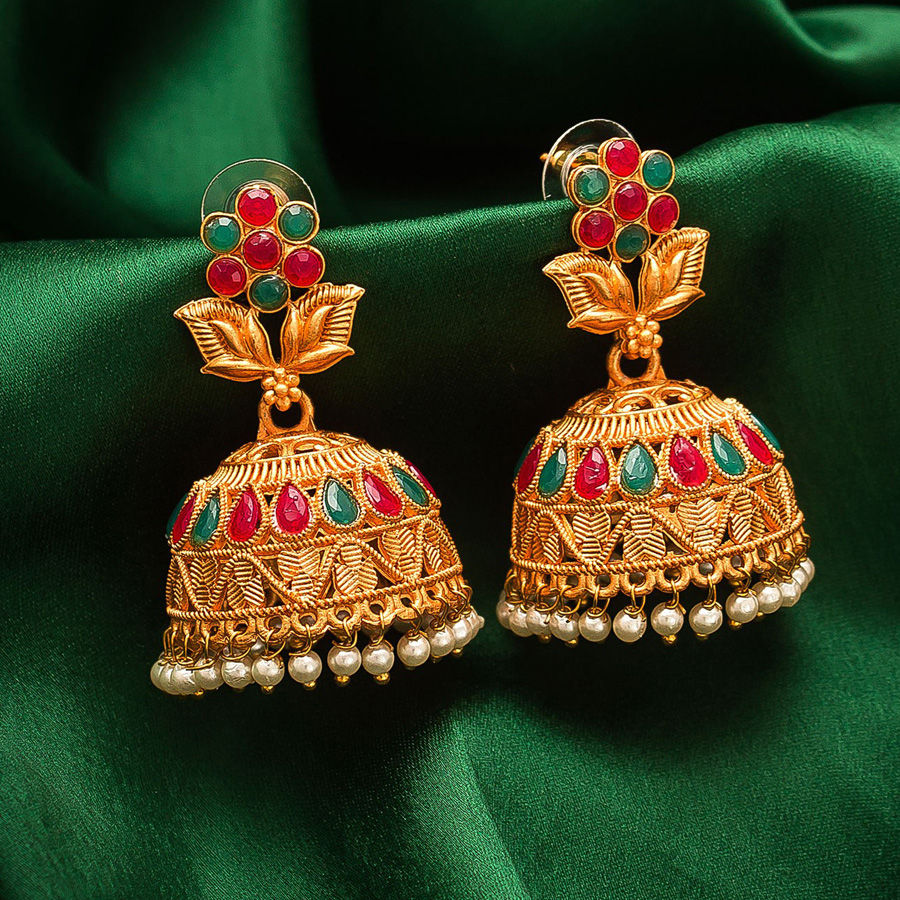 Gold Rodium Polish Multicolor color Earrings in Metal Alloy studded with CZ Diamond, Pearl