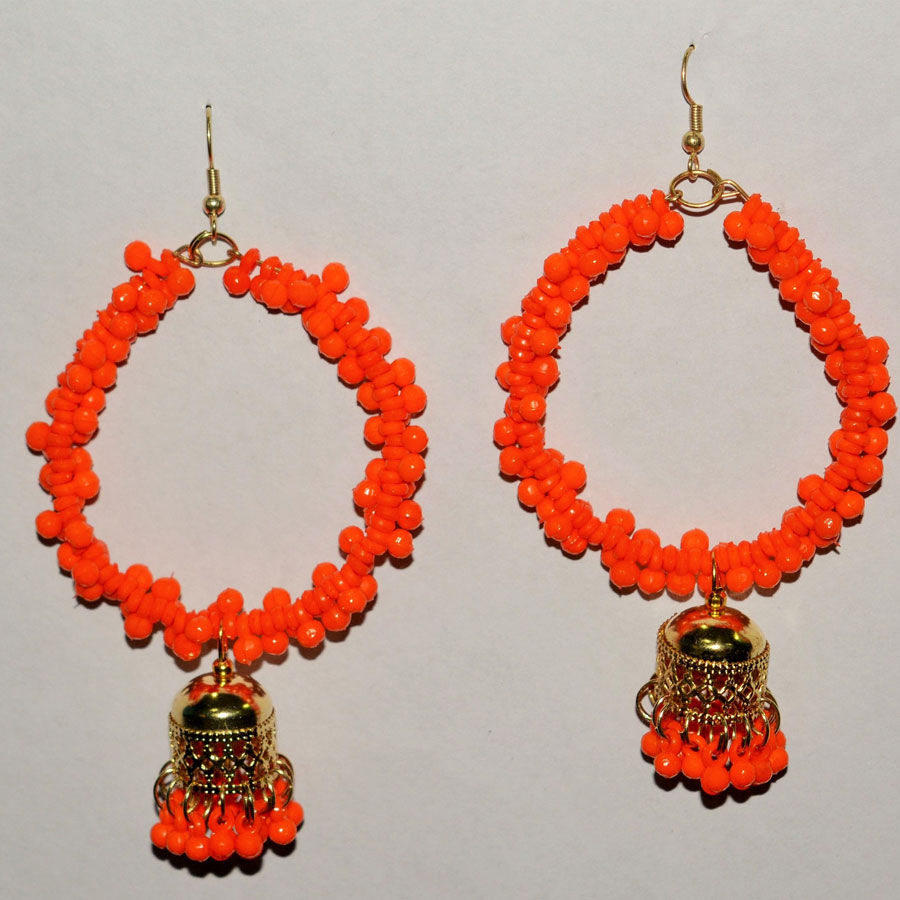 Gold Rodium Polish Orange color Earrings in Metal Alloy studded with Beads