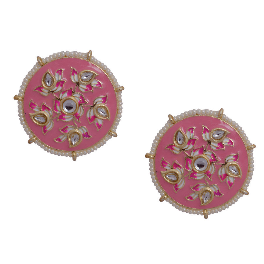 Gold Rodium PolishPink and Majenta Earrings in Brass with Kundan