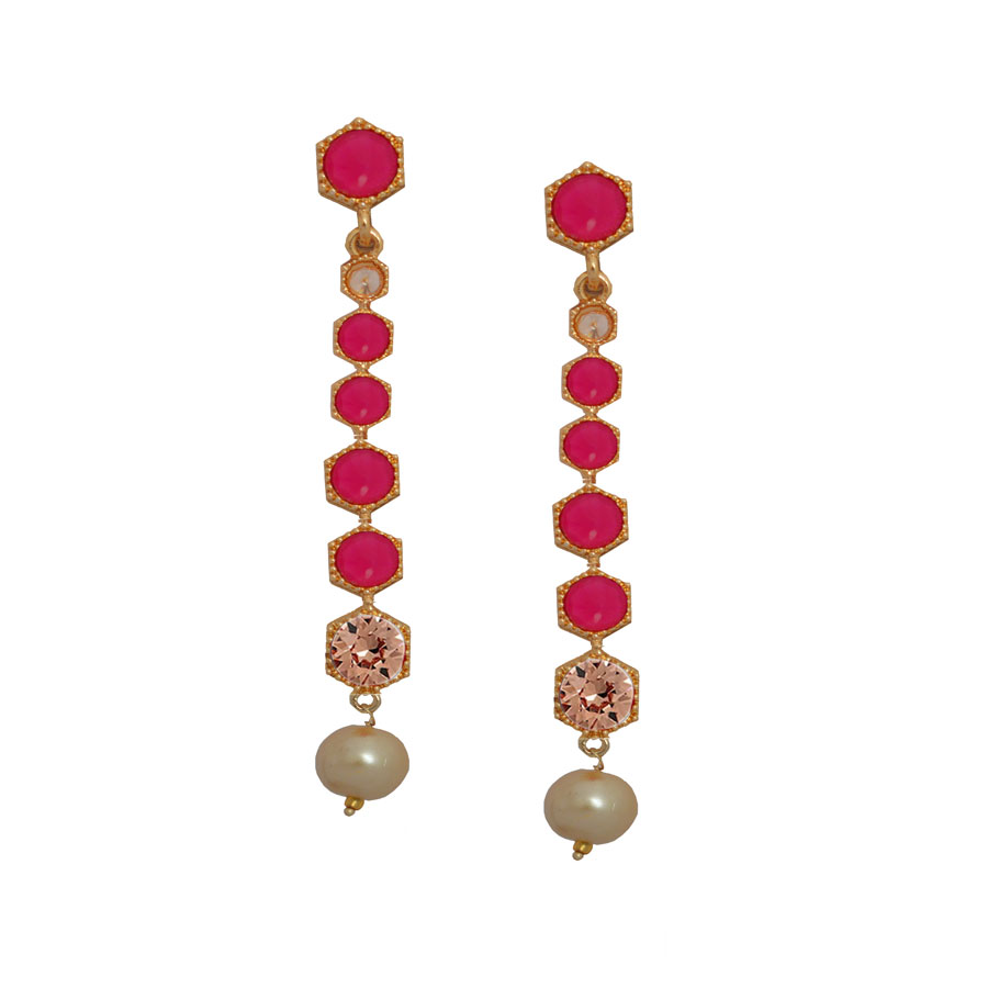 Gold Rodium Polish Pink and Majenta color Earrings in Brass studded with CZ Diamond, Kundan