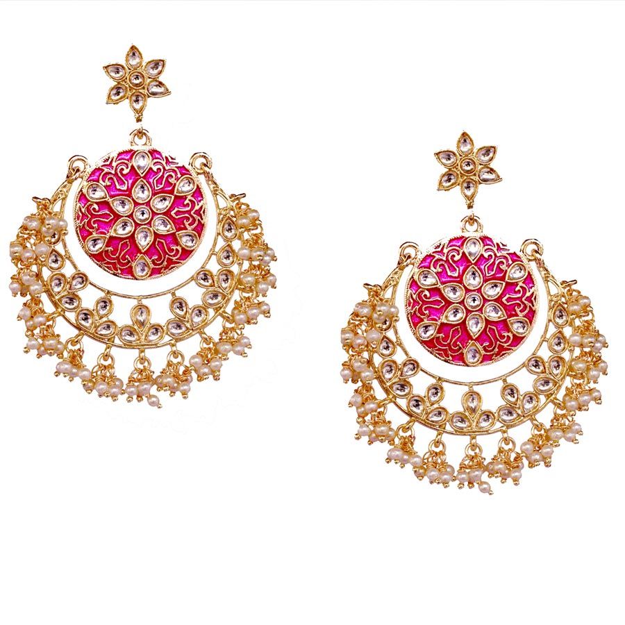 Gold Rodium Polish Pink and Majenta Earrings in Brass with Kundan