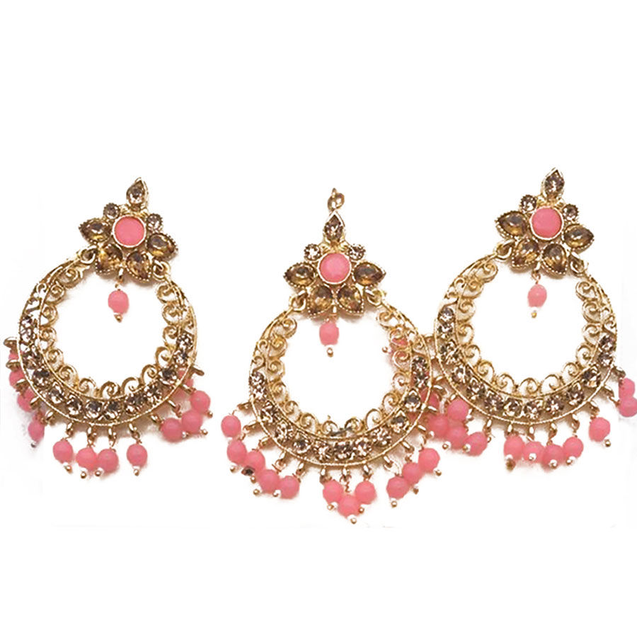 Gold Rodium Polish Pink and Majenta color Earrings in Copper, Metal Alloy studded with CZ Diamond