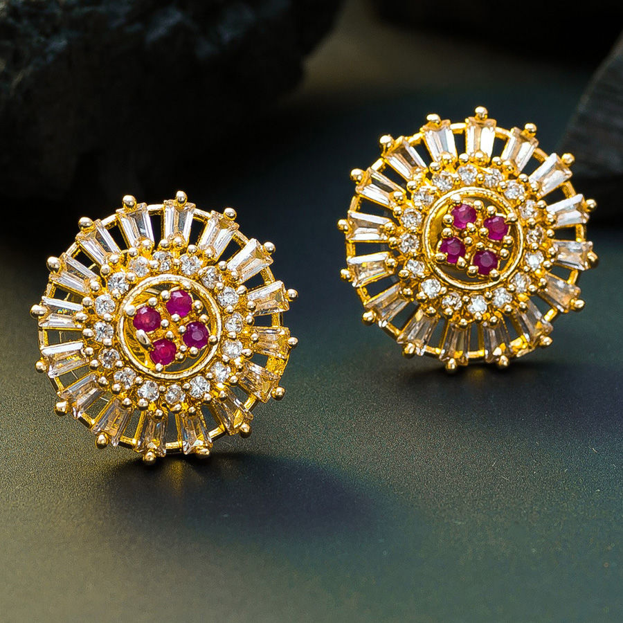 Gold Rodium Polish Pink and Majenta, White and Off White color Earrings in Metal Alloy studded with Austrian diamond