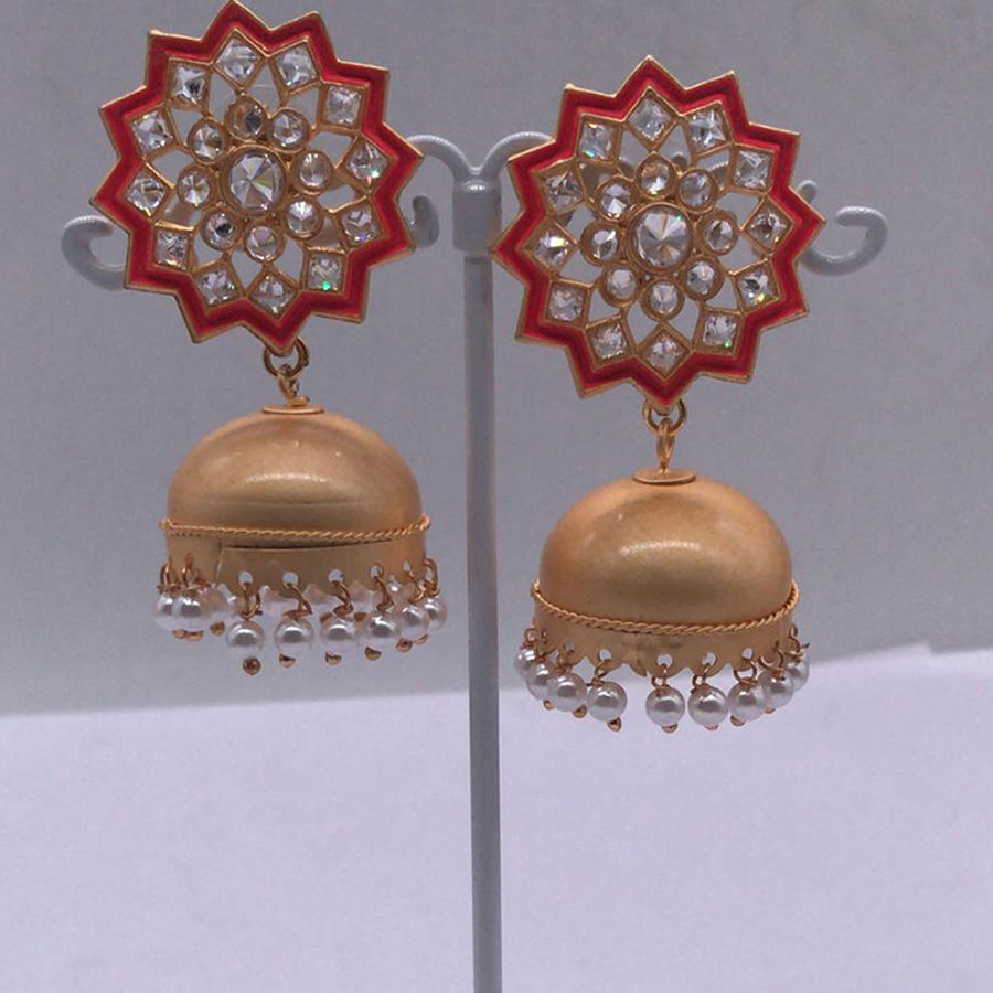 Gold Rodium Polish Pink and Majenta color Earrings in Metal Alloy studded with CZ Diamond, Pearl