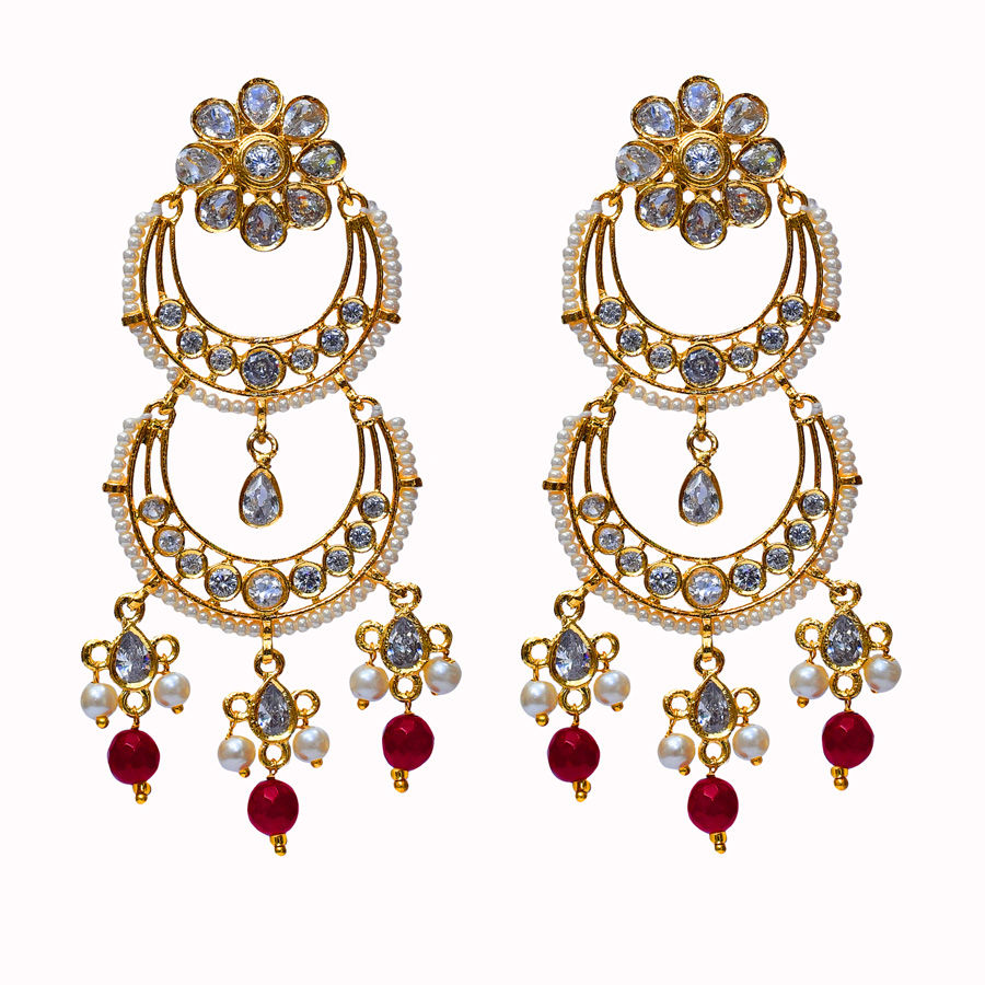 Gold Rodium Polish Pink and Majenta, White and Off White color Earrings in Metal Alloy studded with Kundan, Pearl