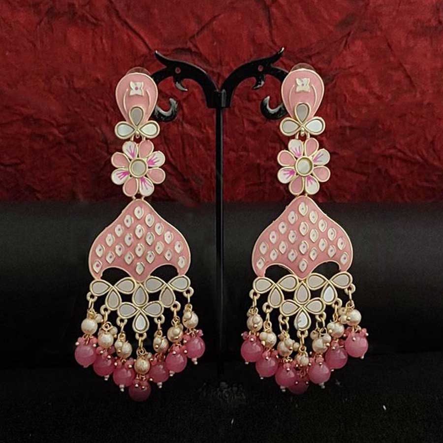 Gold Rodium Polish Pink and Majenta color Earrings in Brass, Copper, Metal Alloy studded with Pearl