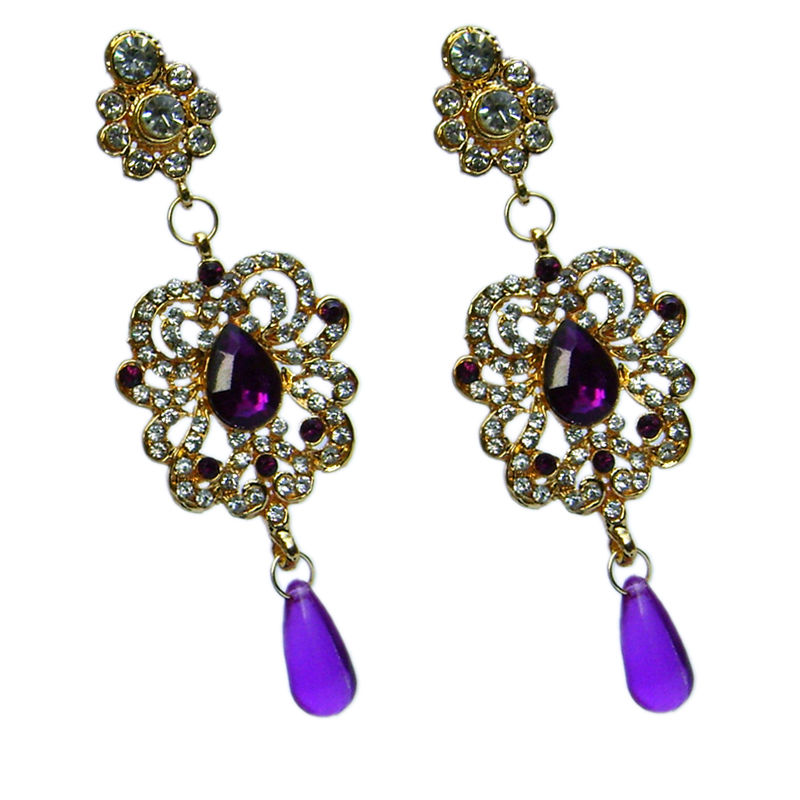 Gold Rodium Polish Purple and Violet color Earrings in Metal Alloy studded with Beads, CZ Diamond