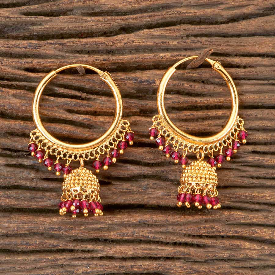 Gold Rodium Polish Red and Maroon color Earrings in Brass studded with Beads