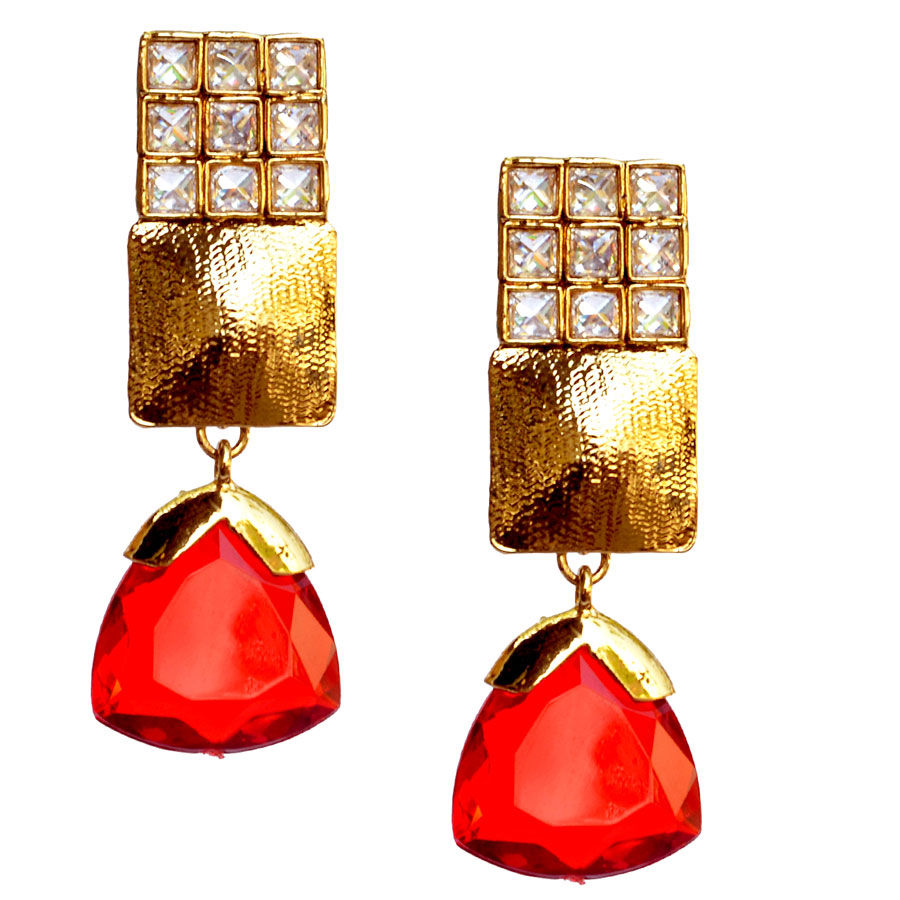 Gold Rodium PolishRed and Maroon Earrings in Brass with CZ Diamond