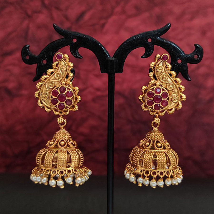 Gold Rodium Polish Red and Maroon color Earrings in Brass, Copper, Metal Alloy studded with Pearl