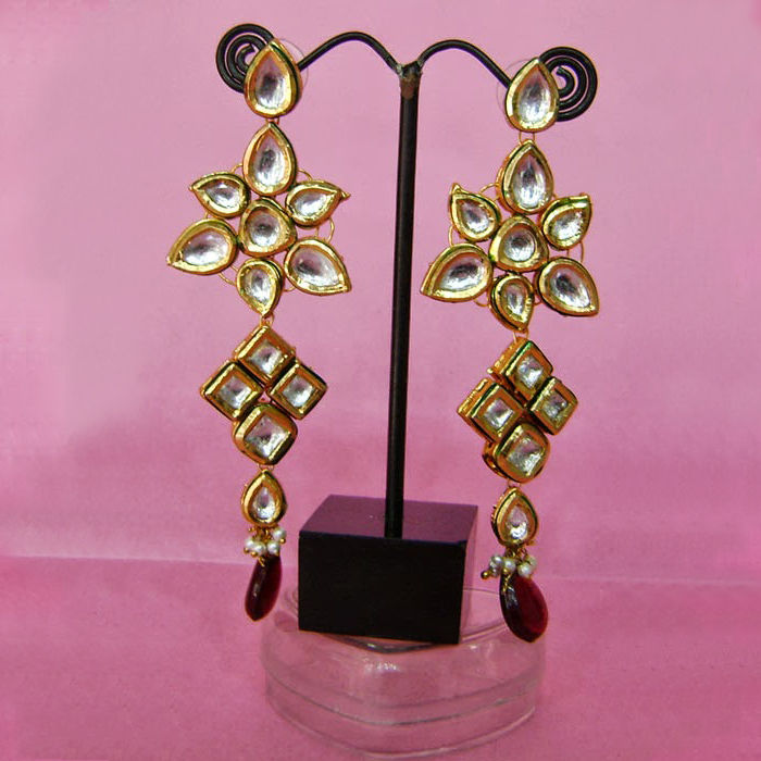 Gold Rodium Polish Gold Earrings in Metal Alloy with Kundan