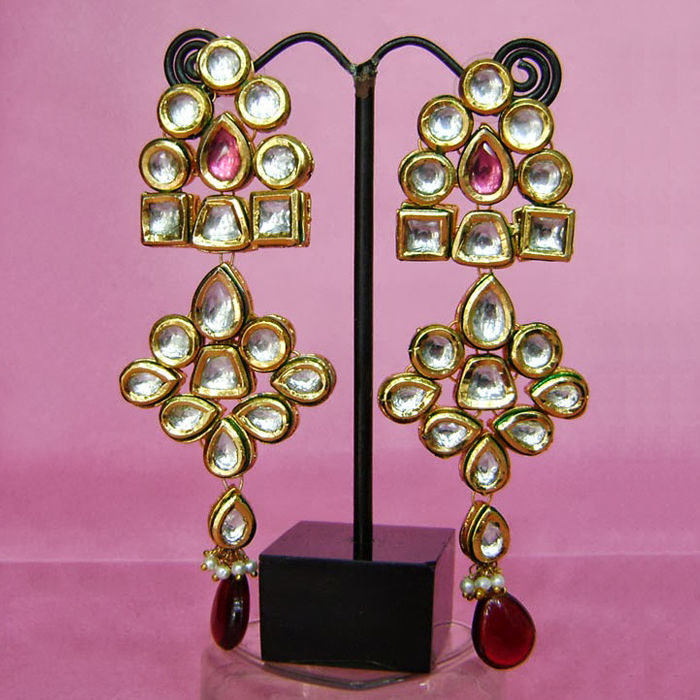 Gold Rodium Polish Gold Earrings in Metal Alloy with Kundan