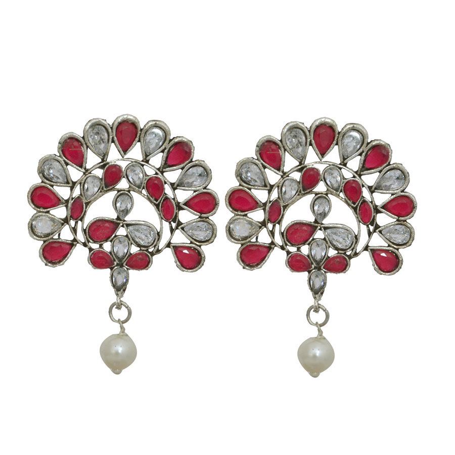Gold Rodium Polish Red and Maroon color Earrings in Metal Alloy studded with CZ Diamond, Kundan