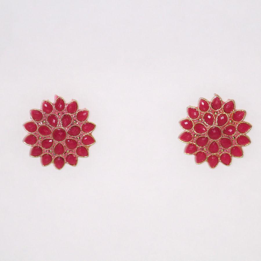 Gold Rodium Polish Red and Maroon Earrings