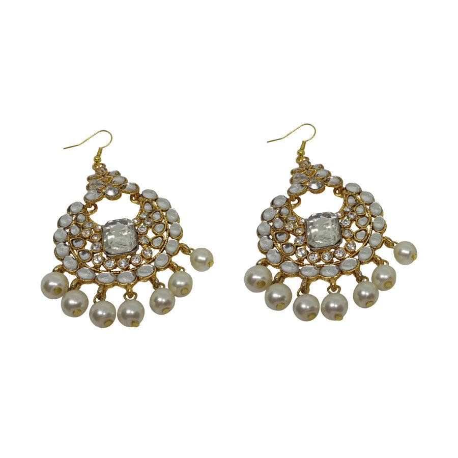 Gold Rodium Polish White and Off White color Earrings in Brass studded with Austrian diamond