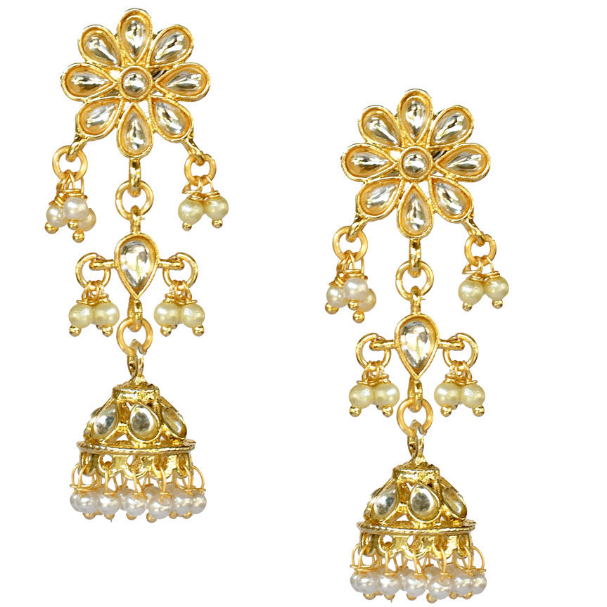 Gold Rodium Polish White and Off White color Earrings in Brass studded with CZ Diamond, Kundan