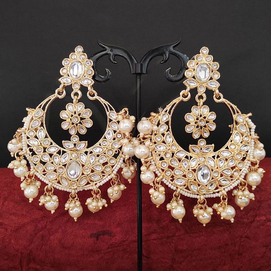 Gold Rodium Polish White and Off White color Earrings in Brass, Copper, Metal Alloy studded with CZ Diamond, Pearl
