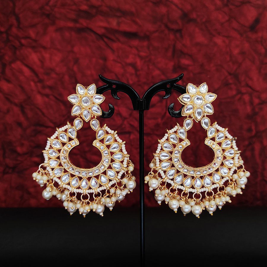 Gold Rodium Polish White and Off White color Earrings in Brass, Copper, Metal Alloy studded with CZ Diamond, Pearl
