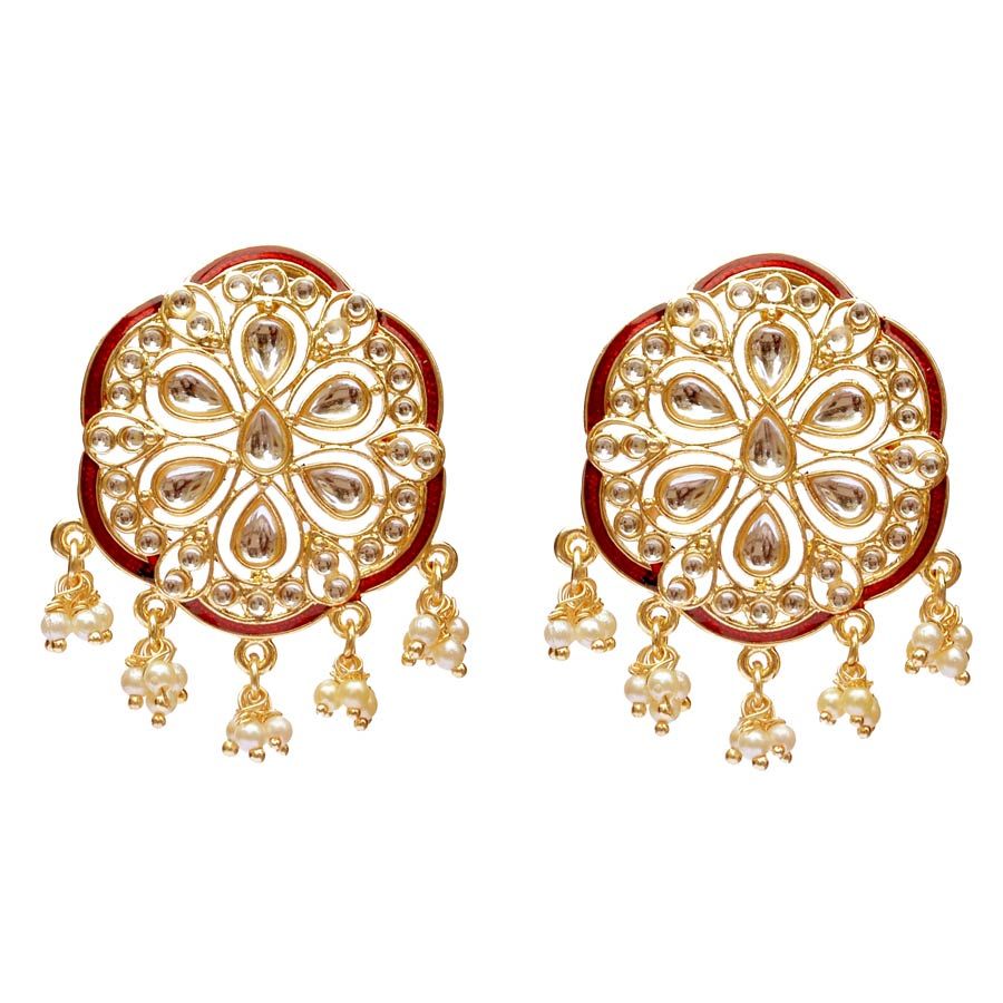Gold Rodium PolishWhite and Off White Earrings in Brass with Kundan