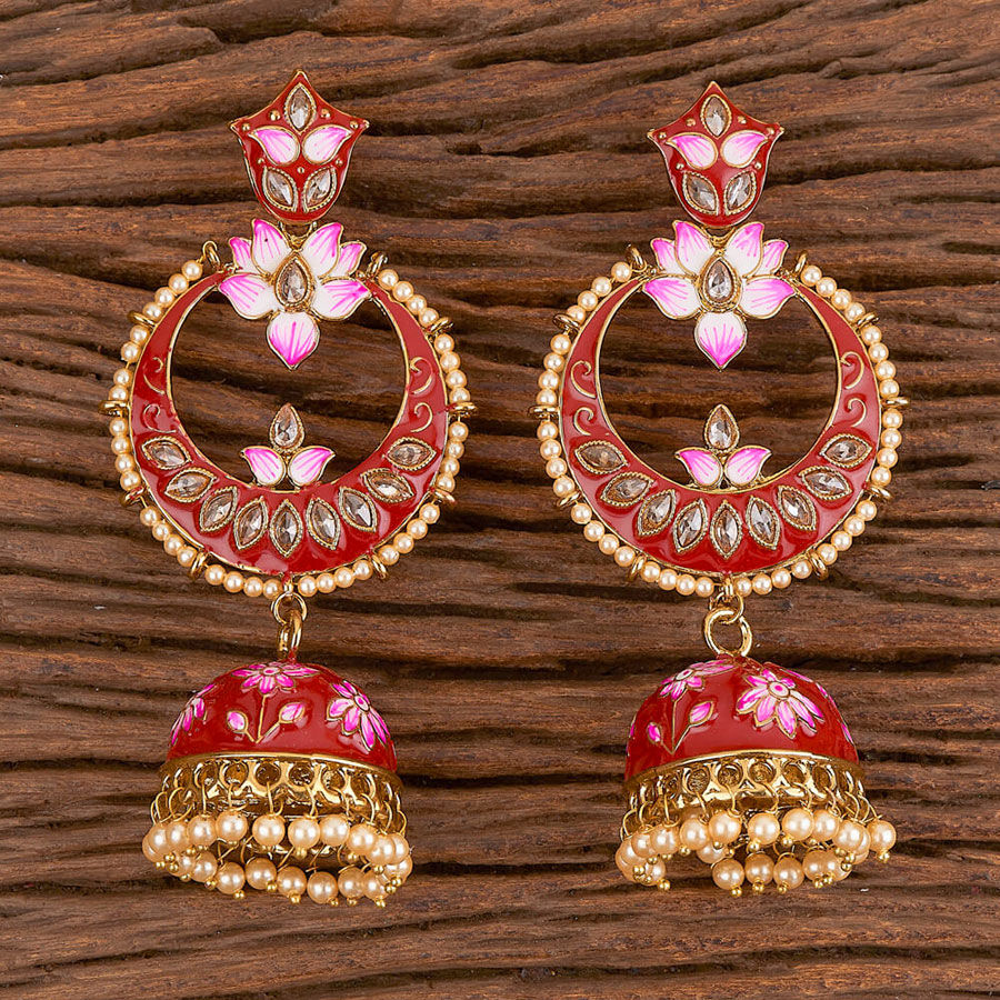 Gold Rodium Polish Red and Maroon Earrings in Brass with Beads