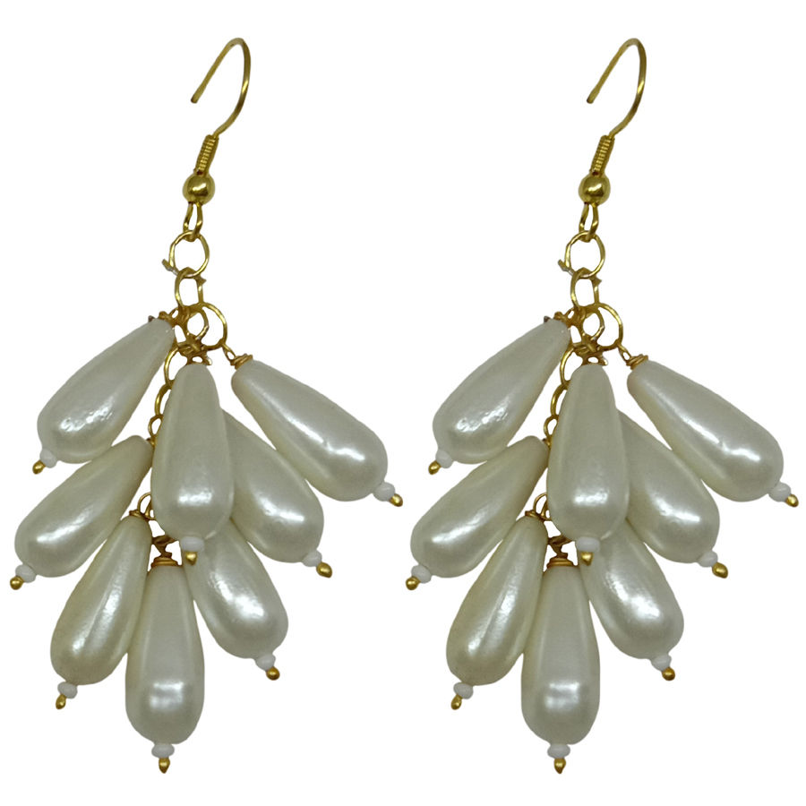 Gold Rodium Polish White and Off White Earrings