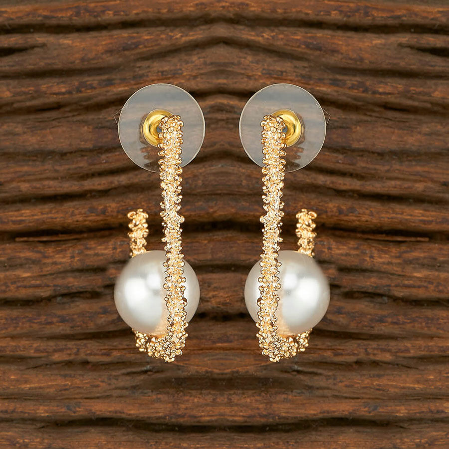 Gold Rodium Polish White and Off White Earrings in Brass with Pearl